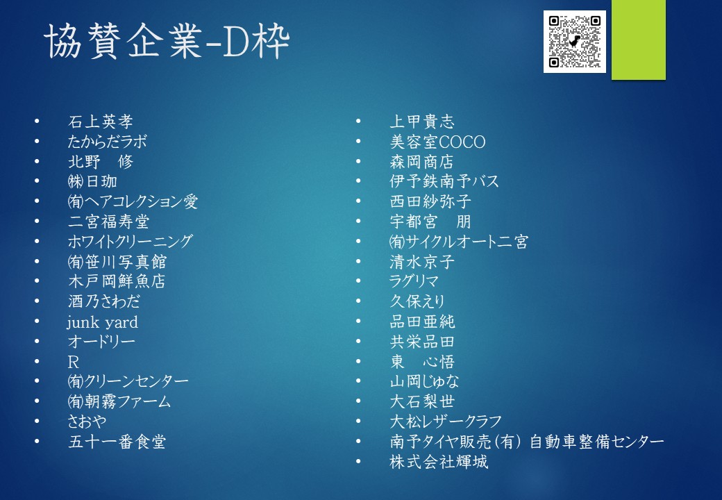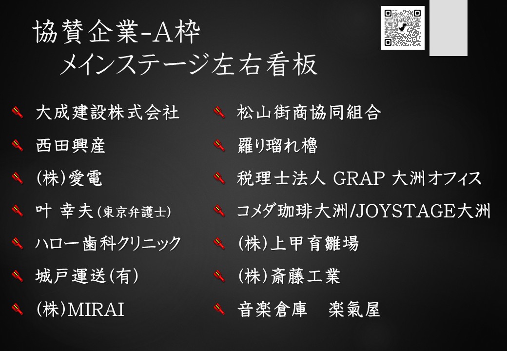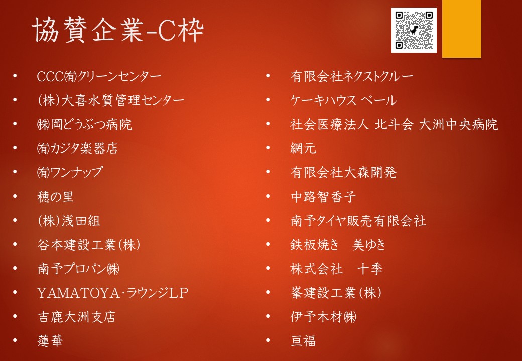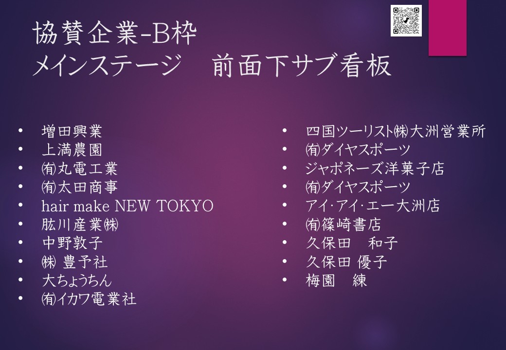 協賛のお願いに対しまして温かいご理解のもとご協力いただきました各企業の皆様には心より感謝申し上げます。